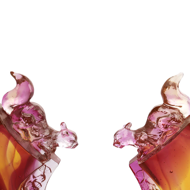 На самом деле, наличие пузырей в стеклянных произведениях вполне нормально. Это связано с тем, что мы используем технику литья по выплавляемым моделям, что, естественно, приводит к появлению пузырьков внутри деталей. То, как свет преломляется сквозь эти внутренние пузырьки, демонстрирует уникальное очарование стеклянного материала. Это прекрасно иллюстрирует, что стекло действительно служит сосудом для света.