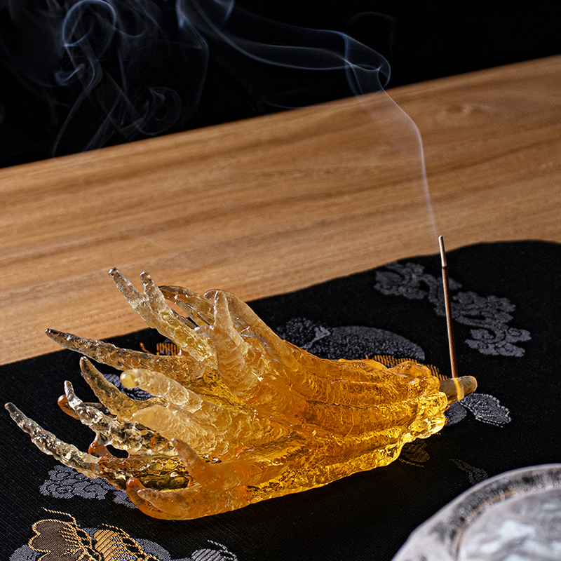 Этот подсвечник для благовоний имеет золотой оттенок, яркий, как солнце, дарящий людям ощущение роскоши и элегантности. С точки зрения формы этот подсвечник для благовоний из цветного стекла имеет форму руки с естественно вытянутыми пальцами, каждая деталь прорисована в деталях, что свидетельствует о превосходном мастерстве мастера. Текстура и суставы пальцев как живые, словно придают этой руке жизненную силу. Желательно сочетать в себе практичность и художественность подставки для благовоний. Когда благовония зажжены, дым медленно поднимается из пальцев, создавая тихую и загадочную атмосферу. Независимо от того, используется ли он в качестве подставки для благовоний или размещается в помещении в качестве украшения, он может добавить в окружающую среду уникальную художественную атмосферу.